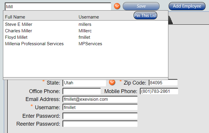 In some windows, the intelligent search list may be "pinned", meaning that the list will stay visible as a column on the left side of a window. Pinning a list is one of many basic functions available throughout the iPDWeb application.