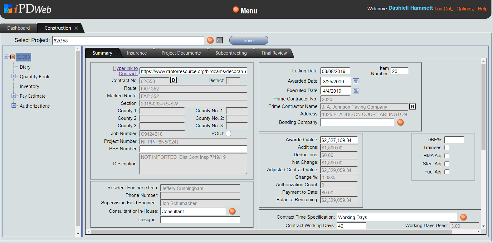 The Construction Window allows for the review and management of the construction management process from the completion of the estimate to the execution of the contract with the winning bidder. This process includes sending bids to the vault for contractors to access, authorizing bidders, tracking addenda, and the award and executing process.
