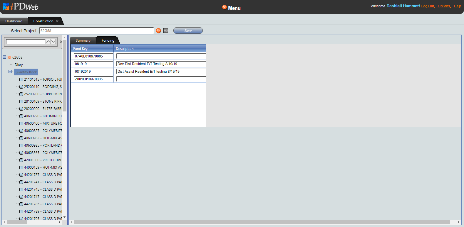 The Funding Tab is used to set or modify the funding for a category. The Fund Keys in this table can be attached to an item entry in the Pay Item Entry Tab of the Item Window.