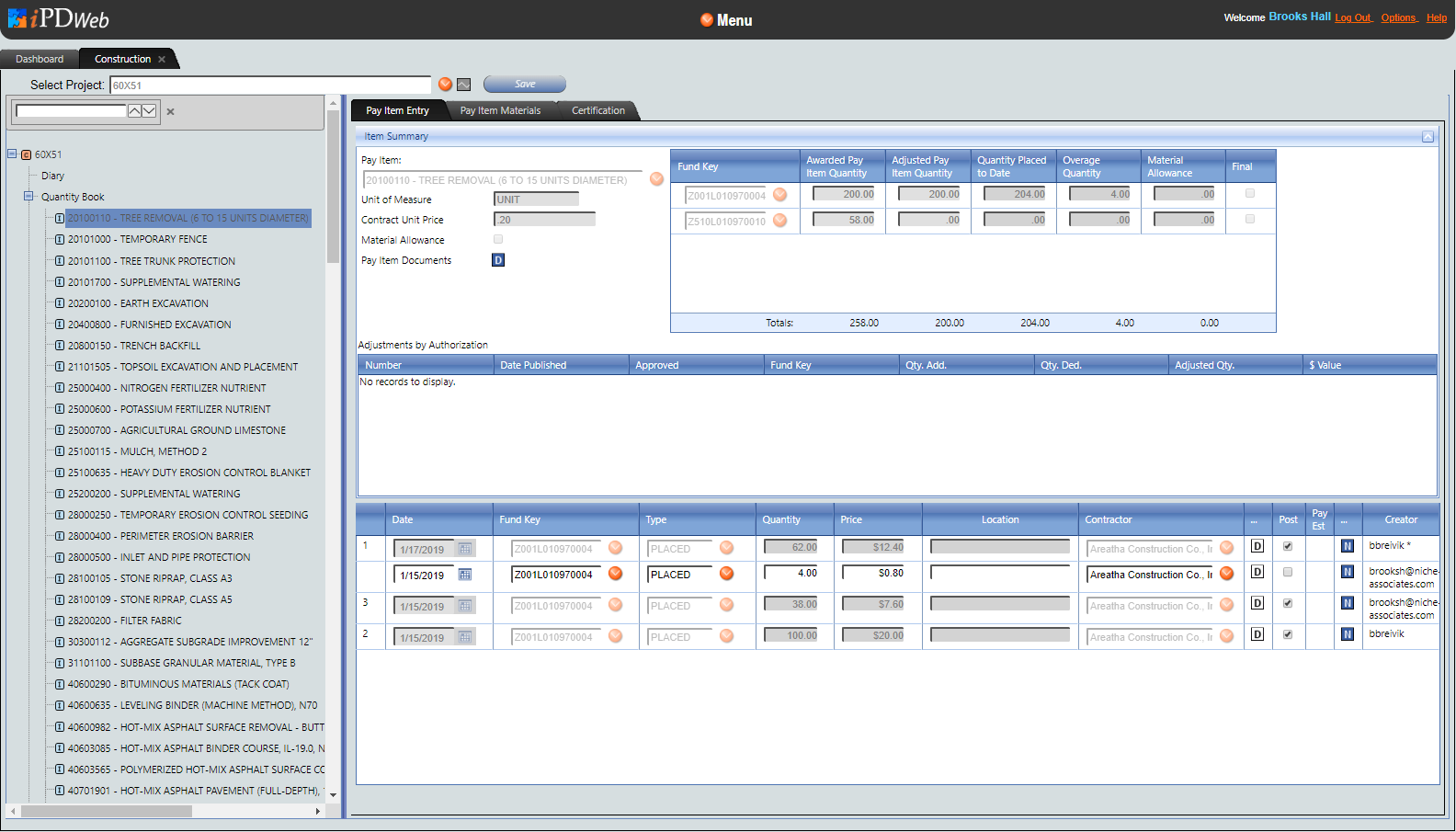 The Pay Item Entry Tab is used to update the progress of an item on a project and to note payment information related to an item.