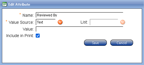 Edit other information including checking boxes to indicate if the attribute will be required or included in printed reports.