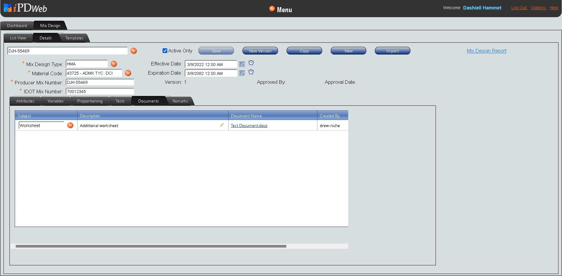 Mix Design Documents Tab