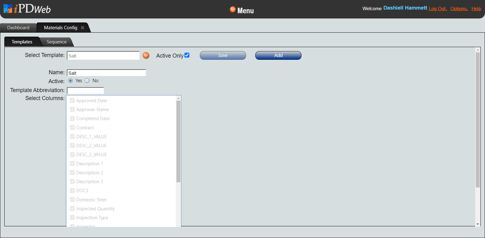 The Materials Config Window allows for the review and configuration of the material templates and sample ID conventions used in the Samples Window.